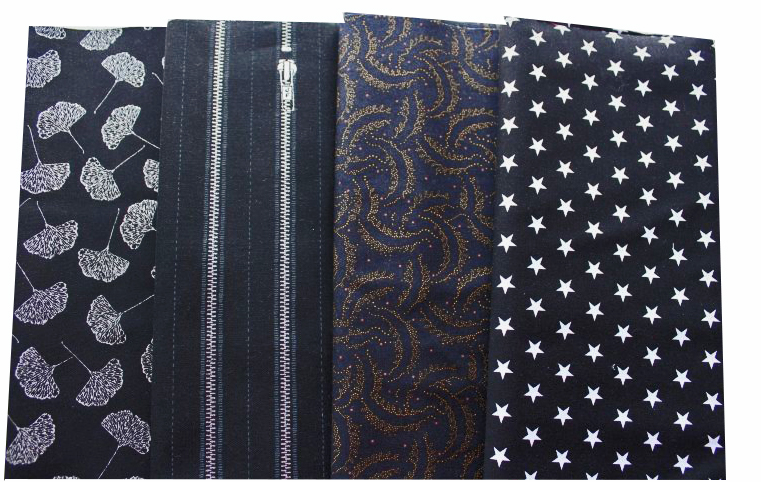 Das Paket enthält vier verschiedene Basicstoffe, von denen jeweils 40 x 105 cm geschnitten wurden, Sie erhalten also 1,6 m Stoff.