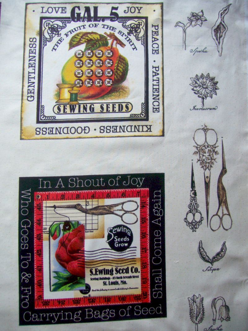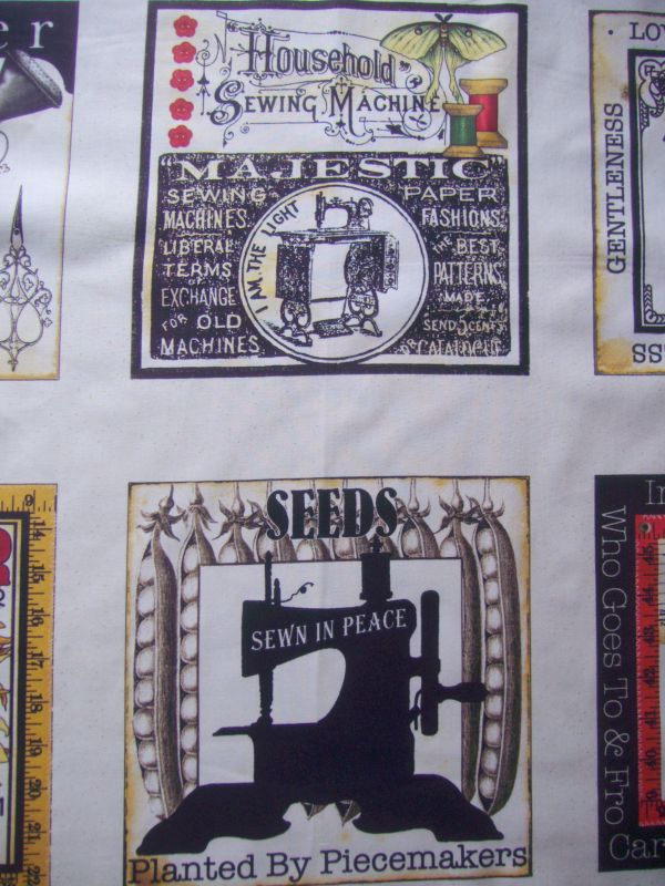Der Preis bezieht sich auf sechs traumhafte Panele mit antiken Nähmotiven, jedes hat eine Größe von ca 23,5 x 24 cm.rechts und links verläuft eine 12 cm breite Bordüre mit unterschiedlichen antiken Scheren. Der Stoff liegt ca 112 cm breit.